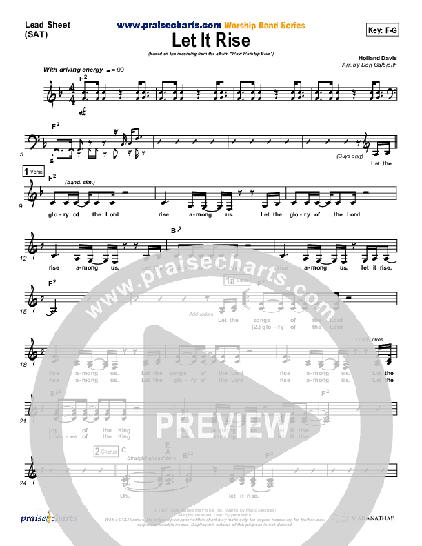 Download the Orchestration for Let It Rise by Holland Davis, from the album WOW Worship Blue. This song was arranged by Daniel Galbraith in the key of F, G.