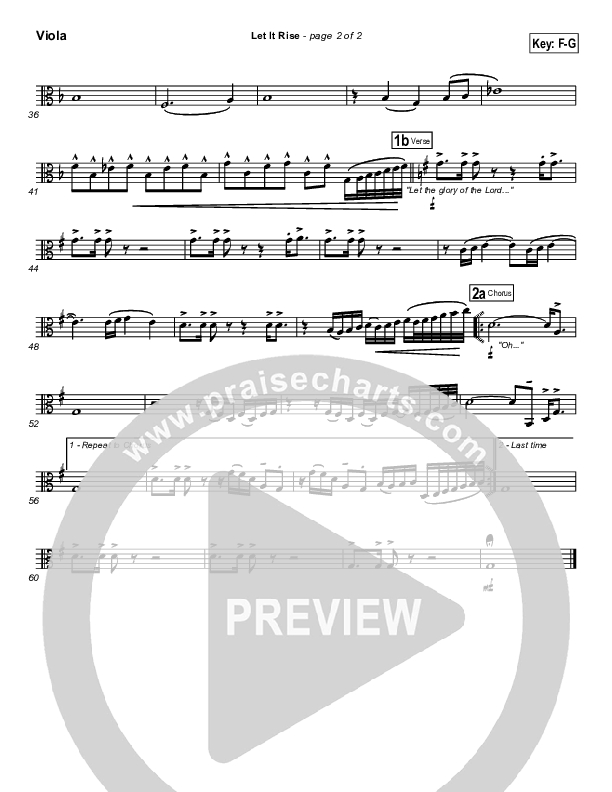 Download the Viola sheet music for Let It Rise by Holland Davis, from the album WOW Worship Blue. This song was arranged by Daniel Galbraith in the key of F, G.