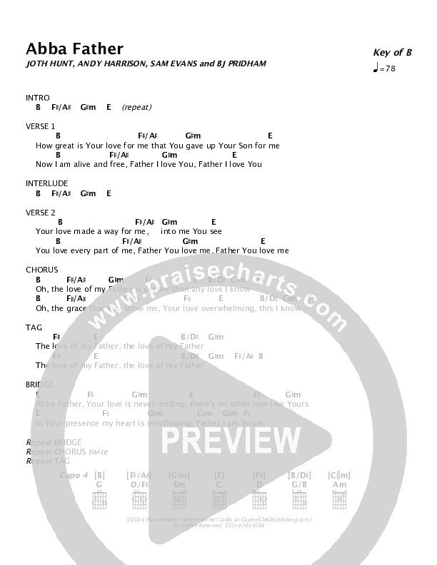 Download the PDF Chord Charts for Abba Father by Planetshakers, from the album This Is Our Time.
