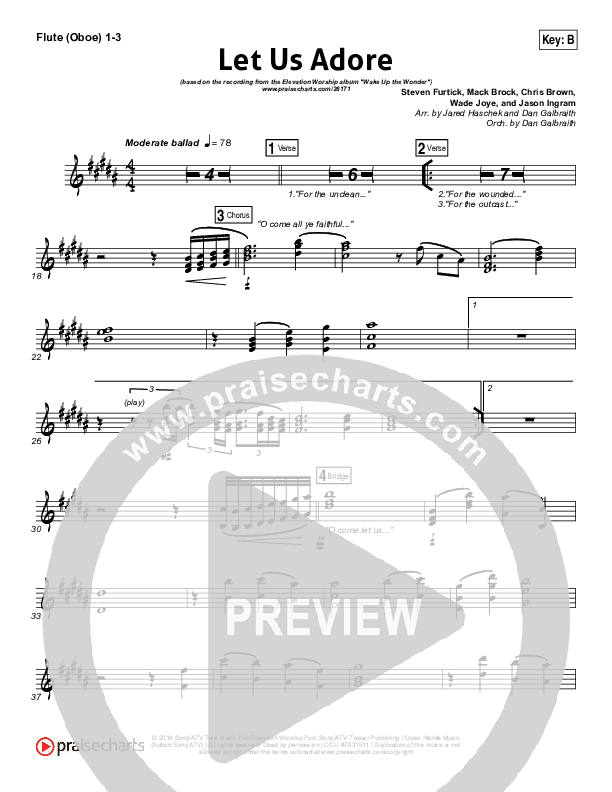 Download the Flute/Oboe sheet music for Let Us Adore by Elevation Worship, from the album Wake Up The Wonder. This song was arranged by Jared Haschek / Daniel Galbraith in the key of B, Bb, D.