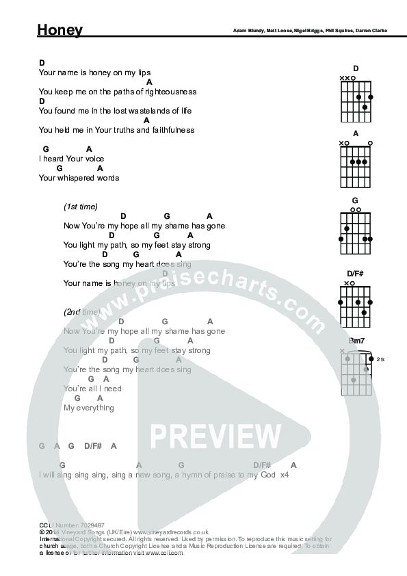 Download the PDF Chord Charts for Honey by Trent / Nigel Briggs, from the album You Make All Things New.