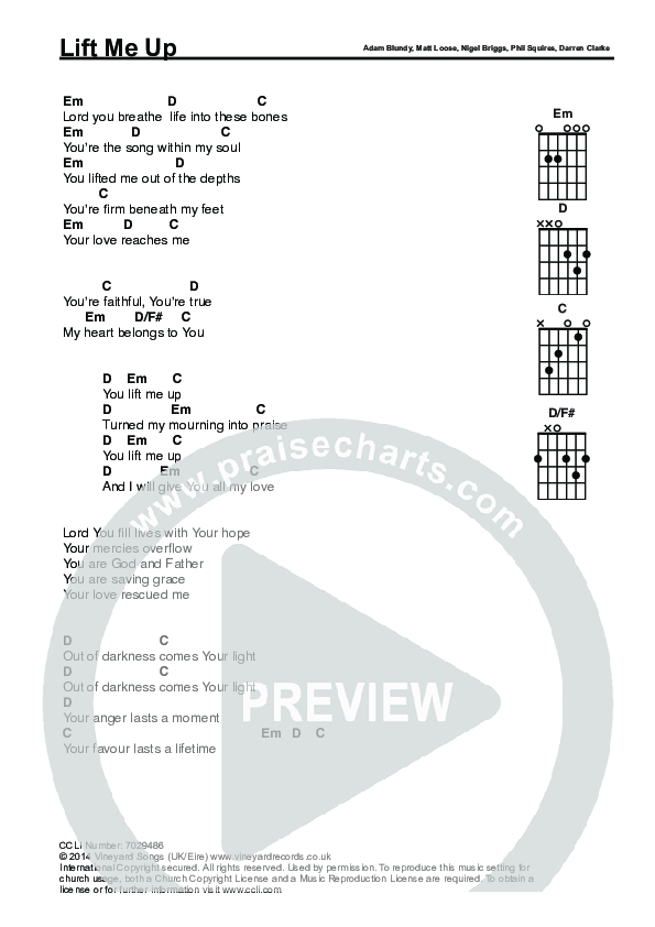 Download the PDF Chord Charts for Lift Me Up by Trent / Nigel Briggs, from the album You Make All Things New.