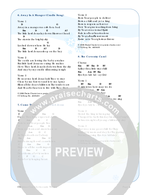 Download the PDF Chord Charts for Christmas Carols For Acoustic Worship by Song Sheets, from the album Christmas Carols For Acoustic Worship.