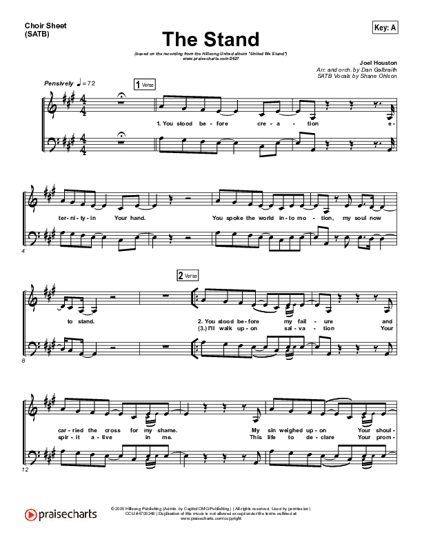 Download the Choir Sheet for The Stand by Hillsong UNITED, from the album United We Stand. This song was arranged by Daniel Galbraith in the key of A, Ab, Bb, C, D.
