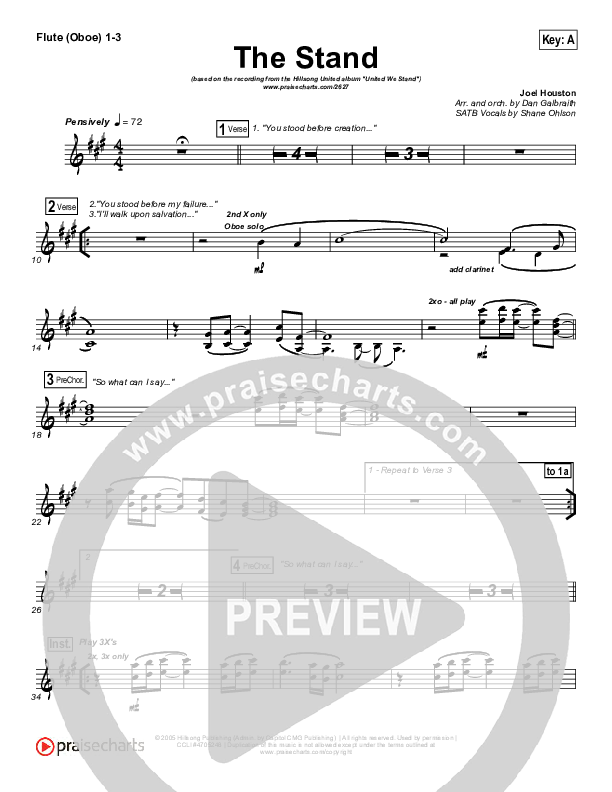 Download the Flute/Oboe sheet music for The Stand by Hillsong UNITED, from the album United We Stand. This song was arranged by Daniel Galbraith in the key of A, Ab, Bb, C, D.
