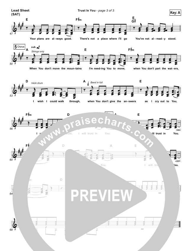 Download the sheet music for Trust In You by Lauren Daigle, from the album How Can It Be. This song was arranged by Erik Foster / Daniel Galbraith in the key of A, Ab, B, Bb.
