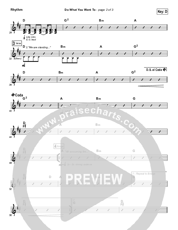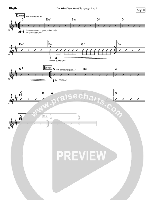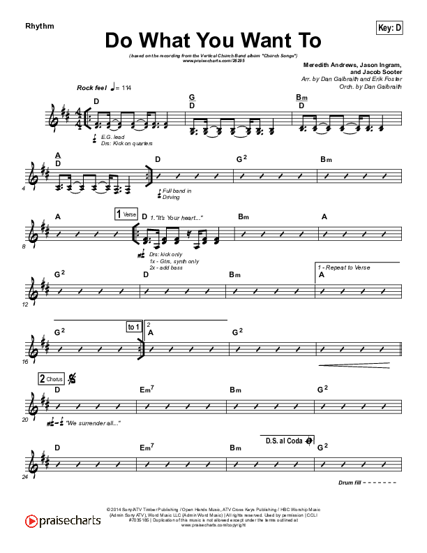 Download the Rhythm Chart for Do What You Want To by Vertical Worship, from the album Church Songs. This song was arranged by Daniel Galbraith / Erik Foster in the key of D, Eb.