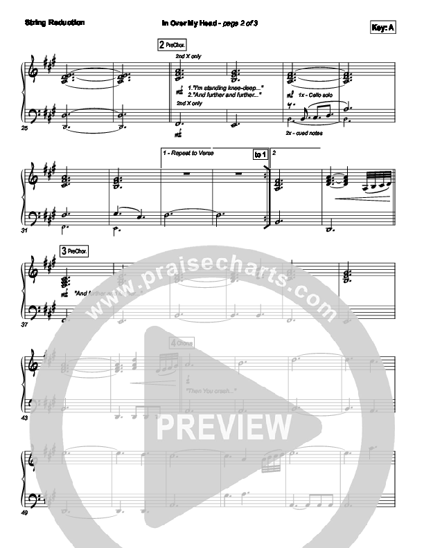 Download the Orchestration for In Over My Head by Bethel Music, from the album We Will Not Be Shaken. This song was arranged by Daniel Galbraith / Erik Foster in the key of A, Bb.
