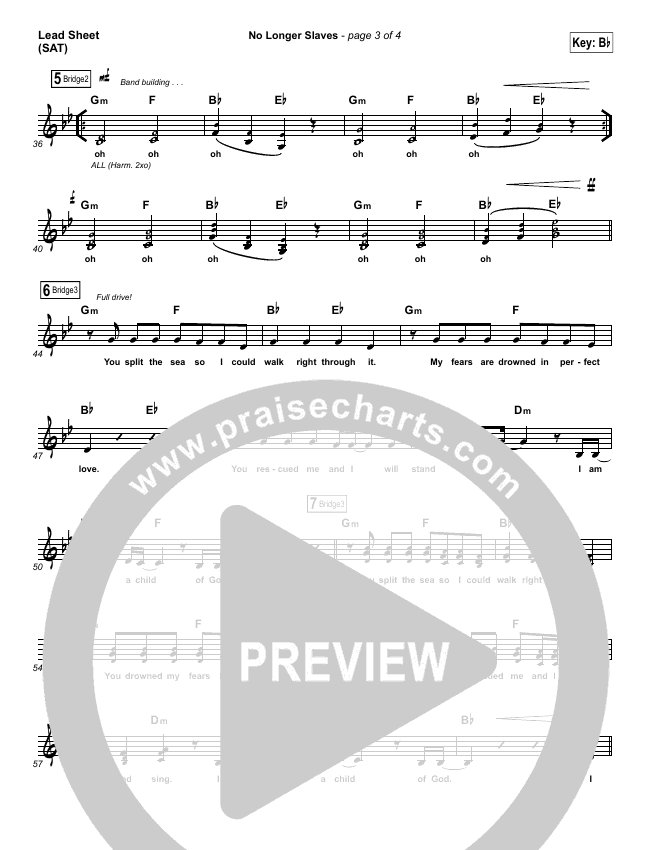 No Longer Slaves (Spontaneous)(Live) Sheet Music PDF (Bethel Music)