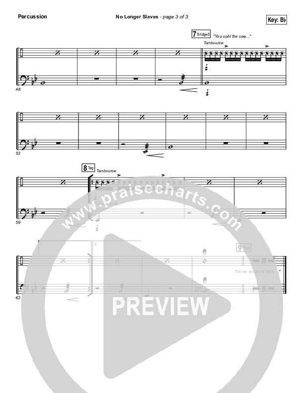 No Longer Slaves (Spontaneous)(Live) Percussion Sheet Music PDF (Bethel Music)