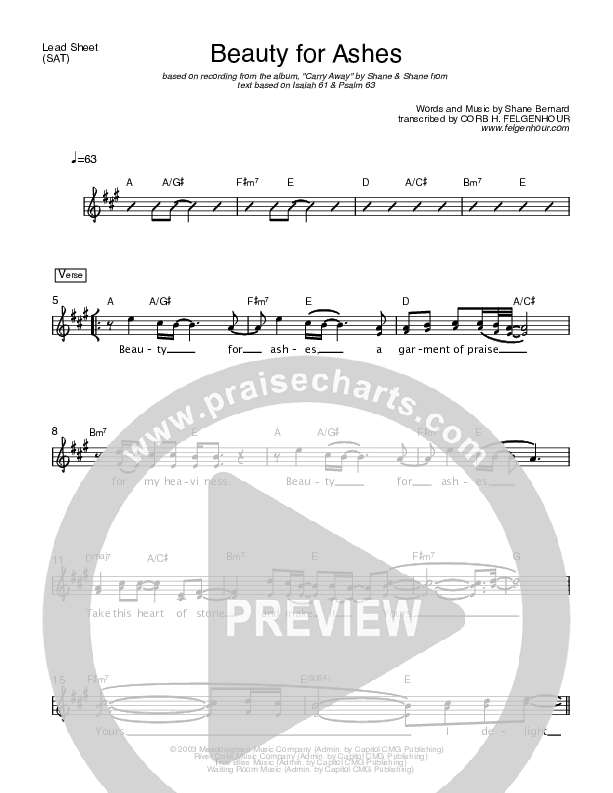 Download the sheet music for Beauty For Ashes by Shane & Shane, from the album Carry Away. This song was arranged by Corb Felgenhour in the key of A, B, Bb, C.