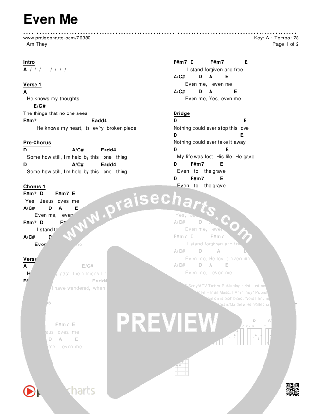 Download the PDF Chord Charts for Even Me by I Am They, from the album I Am They. This song was arranged by Erik Foster in the key of B, Bb, G.