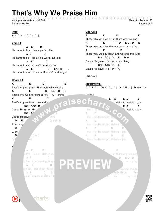 That's Why We Praise Him Chords PDF (Tommy Walker)