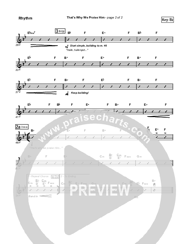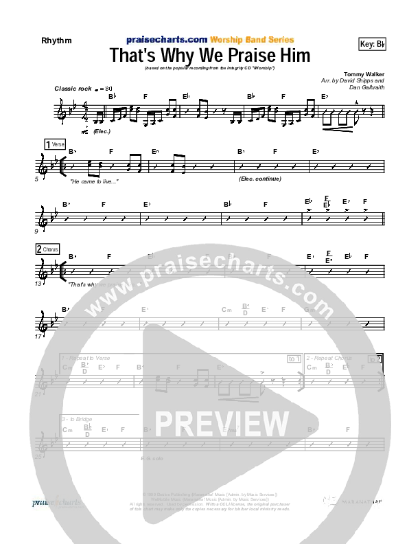 Download the Rhythm Chart for That's Why We Praise Him by Tommy Walker, from the album iWorship CD (Vol. 1). This song was arranged by David Shipps / Daniel Galbraith in the key of Bb, C.