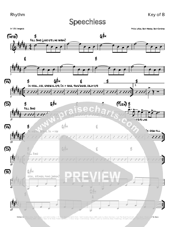 Download the Rhythm Chart for Speechless by Seth Condrey / North Point Worship, from the album Beginnings. This song was arranged by Erik Foster in the key of B, C.