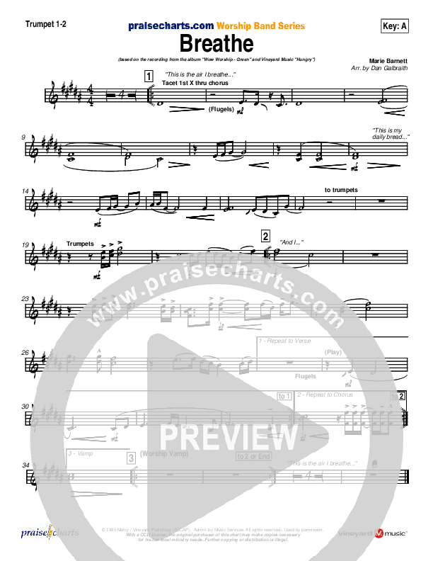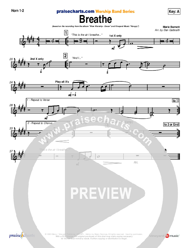 Download the Orchestration brass parts for Breathe / Yearn by Kathryn Scott, from the album Hungry. This song was arranged by Daniel Galbraith in the key of A, Bb.