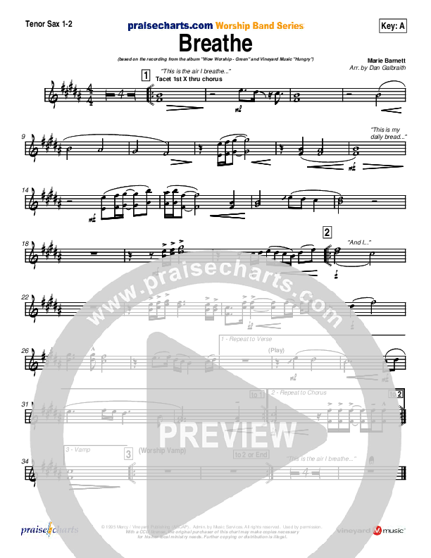 Download the Tenor Sax sheet music for Breathe / Yearn by Kathryn Scott, from the album Hungry. This song was arranged by Daniel Galbraith in the key of A, Bb.