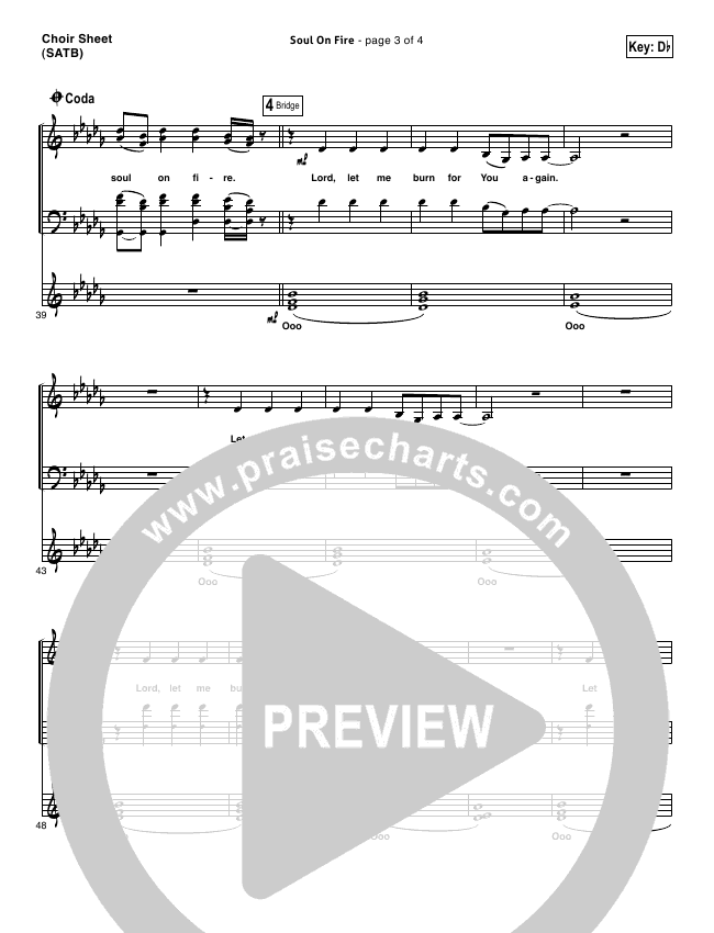 Download the Choir Sheet for Soul On Fire by Third Day, from the album Lead Us Back. This song was arranged by Daniel Galbraith / Jared Haschek in the key of A, Ab, Bb, C, Db, G.