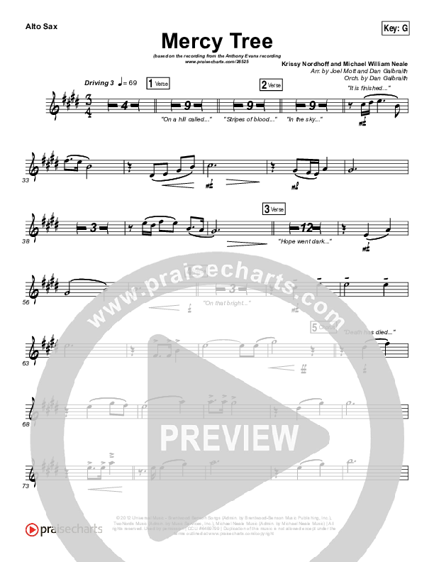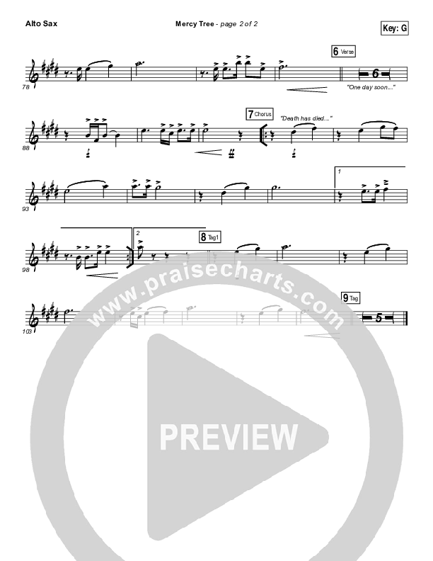 Download the AltoSax sheet music for Mercy Tree by Anthony Evans, from the album Real Life/Real Worship. This song was arranged by Joel Mott / Daniel Galbraith in the key of F, G.