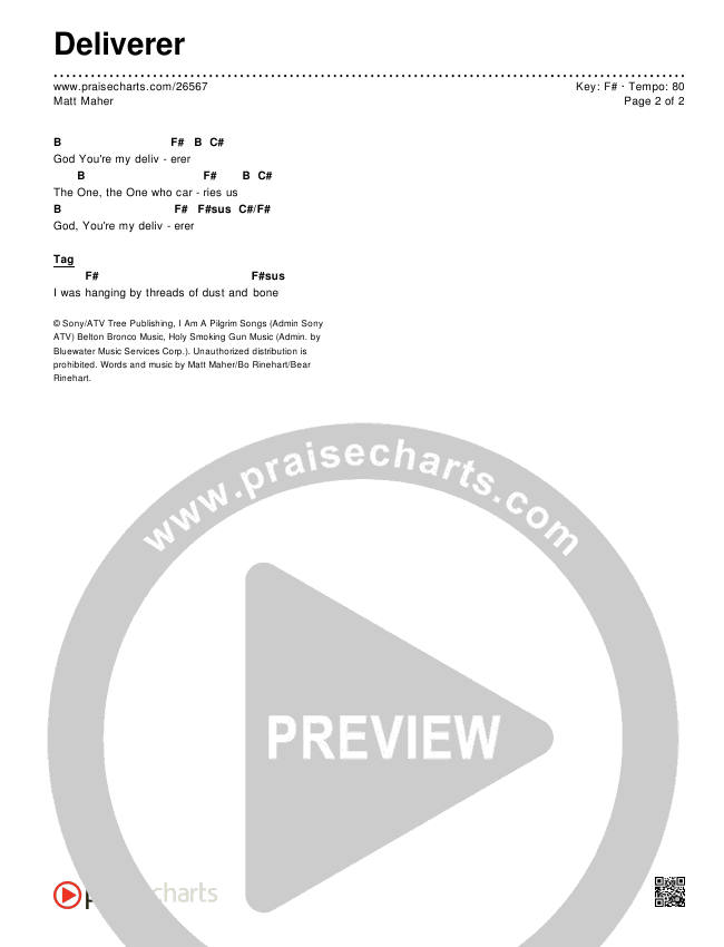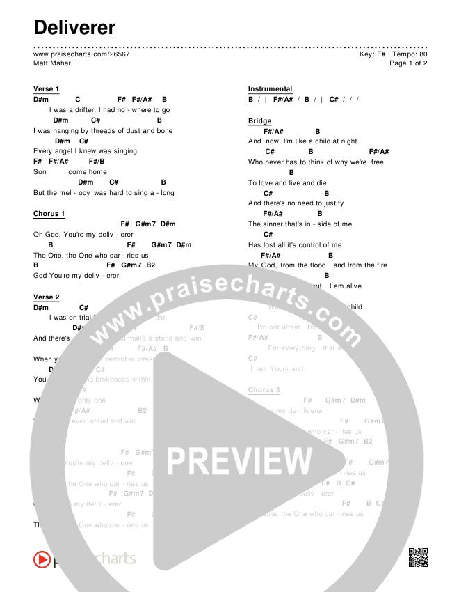 Download the PDF Chord Charts for Deliverer by Matt Maher, from the album Saints & Sinners.