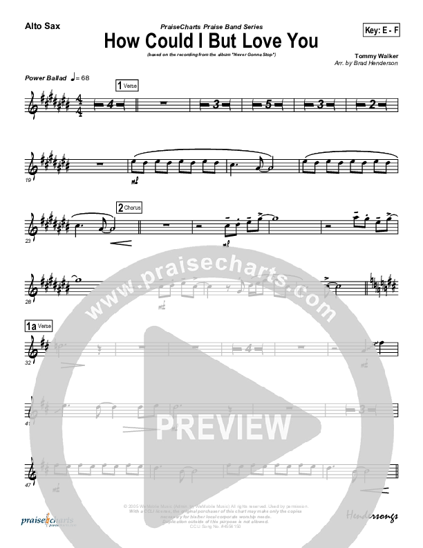 Download the AltoSax sheet music for How Could I But Love You by Tommy Walker, from the album Never Gonna Stop. This song was arranged by Brad Henderson in the key of E, F.