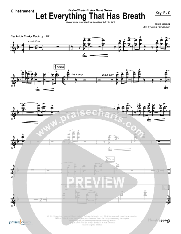 Download the Orchestration for Let Everything That Has Breath by Ron Kenoly, from the album Lift Him Up. This song was arranged by Brad Henderson in the key of F, G.