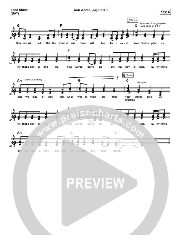 Download the sheet music for Your Words by Third Day, from the album Lead Us Back. This song was arranged by Jared Haschek / Daniel Galbraith in the key of B, Bb, C, D, Eb.