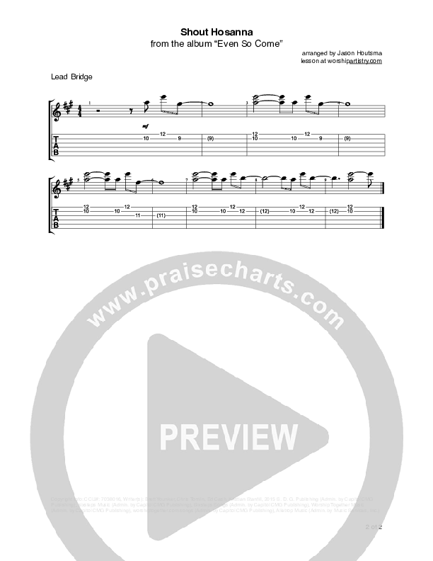 Download the Guitar Tab for Shout Hosanna by Passion / Kristian Stanfill, from the album Even So Come. This song was arranged by Daniel Galbraith / Ed Kerr in the key of A, Ab, F, G, Gb.