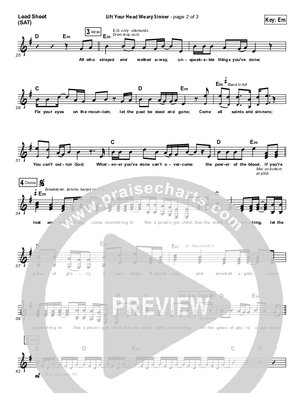 Download the Orchestration for Lift Your Head Weary Sinner (Chains) by Passion / David Crowder, from the album Even So Come. This song was arranged by Daniel Galbraith / Ed Kerr in the key of Dm, Em.