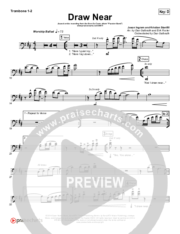 Download the Trombone 1,2 sheet music for Draw Near by Passion / Kristian Stanfill, from the album Even So Come. This song was arranged by Daniel Galbraith / Erik Foster in the key of C, D.