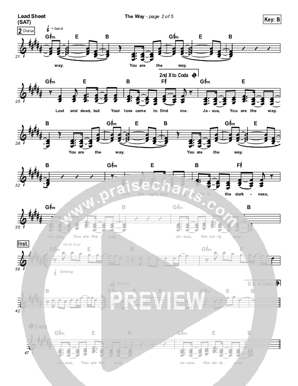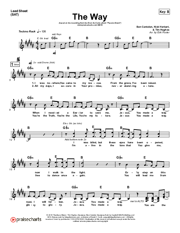 Download the sheet music for The Way by Passion / Brett Younker, from the album Even So Come. This song was arranged by Erik Foster in the key of A, B.