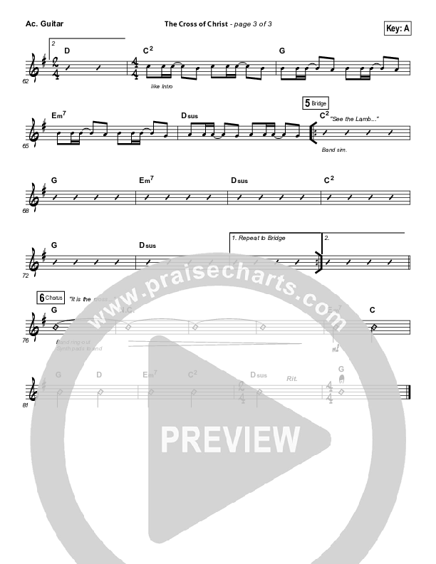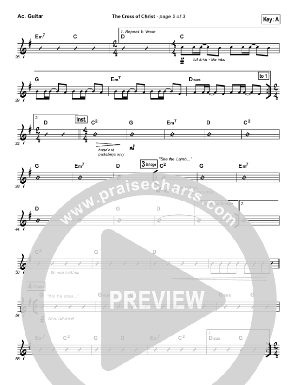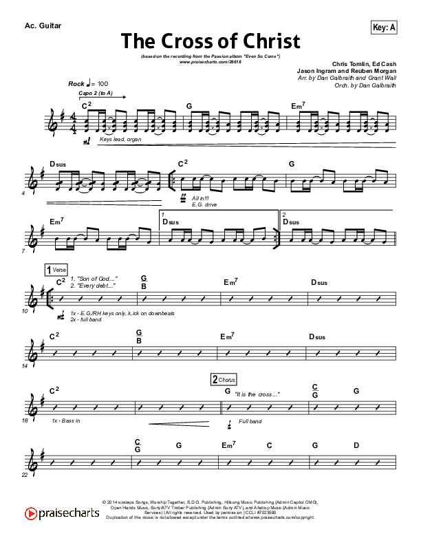 Download the Acoustic Guitar sheet music for The Cross Of Christ by Passion / Chris Tomlin, from the album Even So Come. This song was arranged by Daniel Galbraith / Grant Wall in the key of A, G.