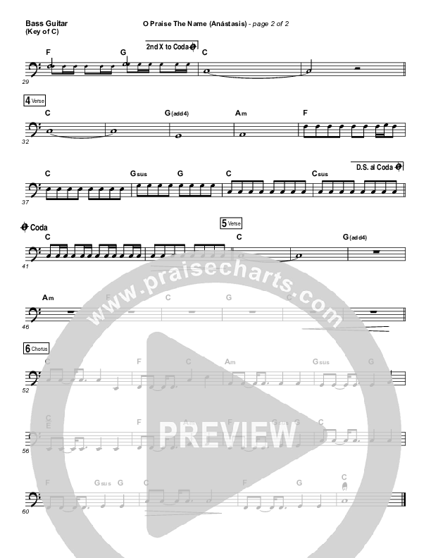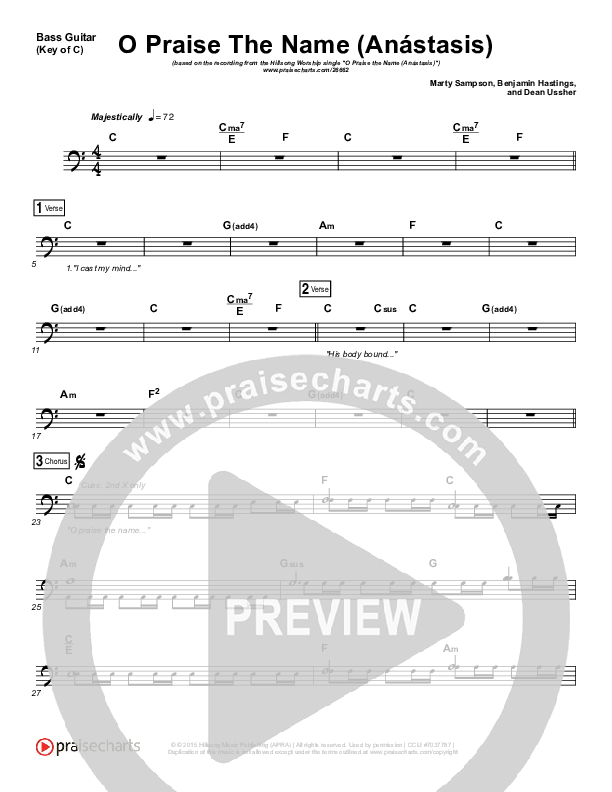 Download the Bass Guitar parts for O Praise The Name (Anastasis) by Hillsong Worship, from the album O Praise The Name (Anastasis). This song was arranged by Daniel Galbraith / Jared Haschek in the key of A, Ab, B, Bb, C, G.