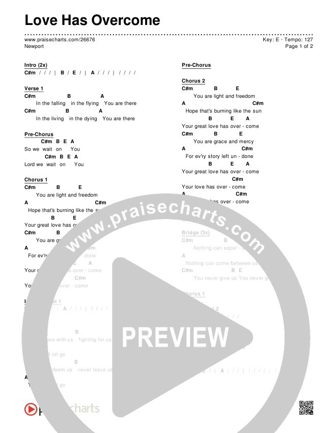 Download the PDF Chord Charts for Your Love Has Overcome by Newport, from the album Paradise. This song was arranged by Dave Iula in the key of E, F.