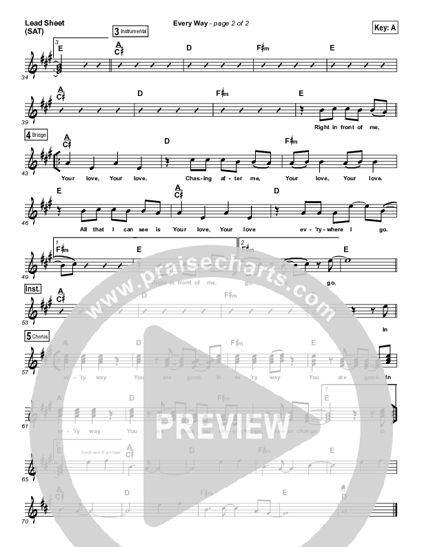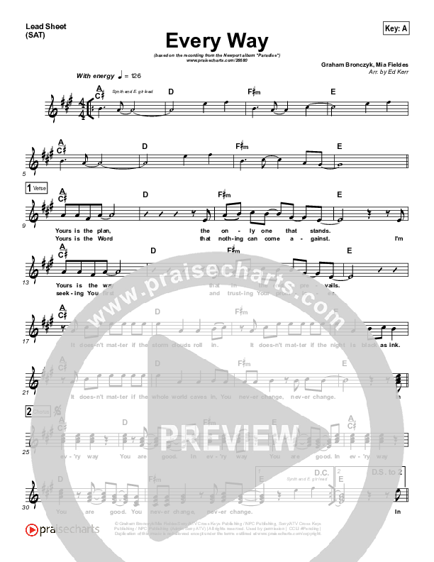 Download the sheet music for Every Way by Newport, from the album Paradise. This song was arranged by Ed Kerr in the key of A, F.