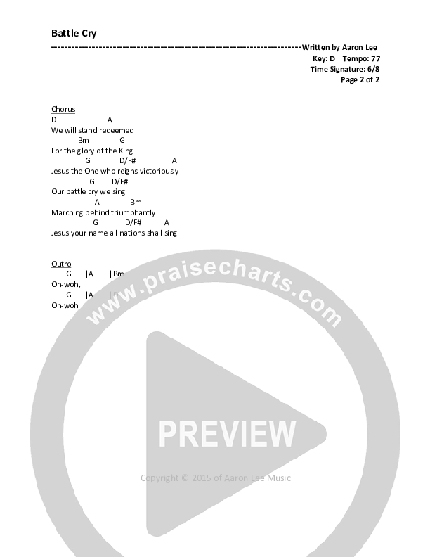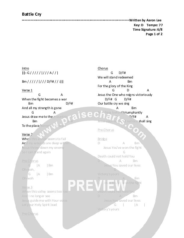 Battle Cry Chords & Lyrics (Aaron Lee)