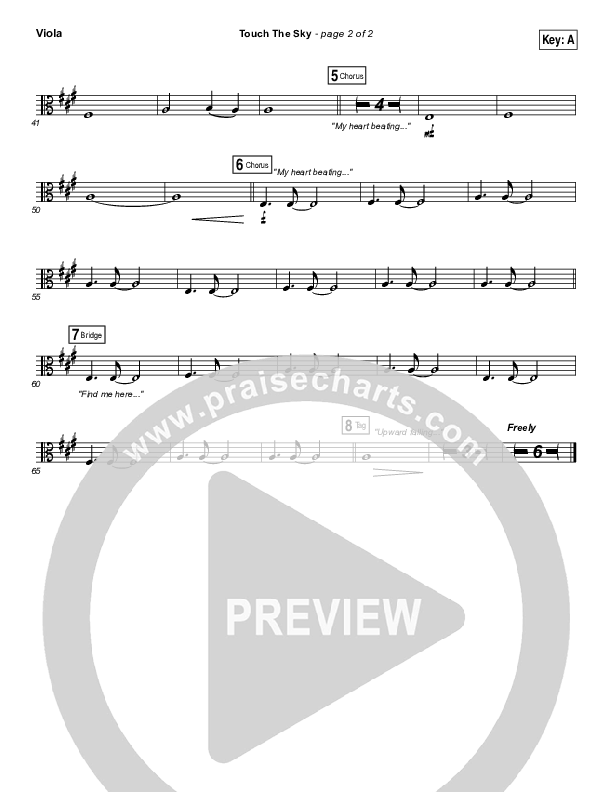 Download the Viola sheet music for Touch The Sky by Hillsong UNITED, from the album Empires. This song was arranged by Daniel Galbraith in the key of A, Ab, B, Bb, C.
