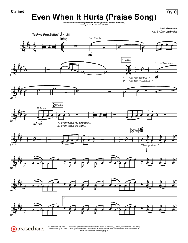 Download the Orchestration for Even When It Hurts (Praise Song) by Hillsong UNITED, from the album Empires. This song was arranged by Daniel Galbraith in the key of C, D.