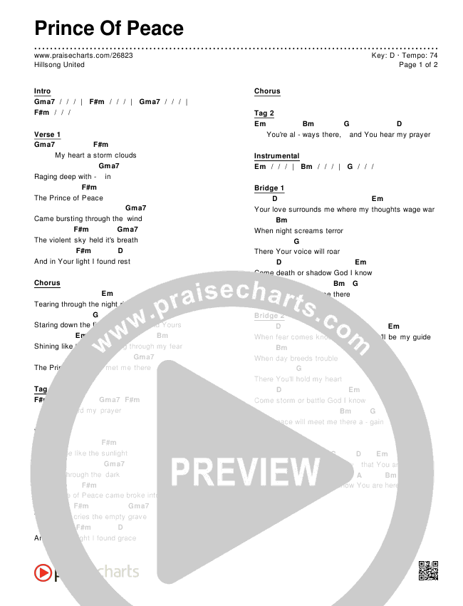 Download the PDF Chord Charts for Prince Of Peace by Hillsong UNITED, from the album Empires. This song was arranged by Dave Iula in the key of D, Eb.