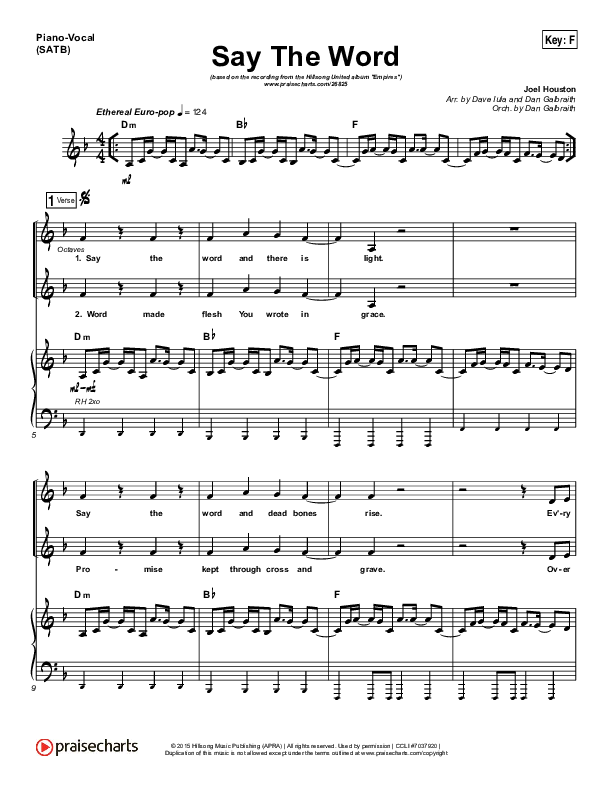 Download the sheet music for Say The Word by Hillsong UNITED, from the album Empires. This song was arranged by Dave Iula / Daniel Galbraith in the key of F, G.
