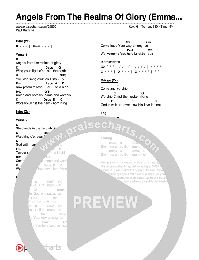 Angels From The Realms Of Glory (Emmanuel) Chords PDF (Paul Baloche)