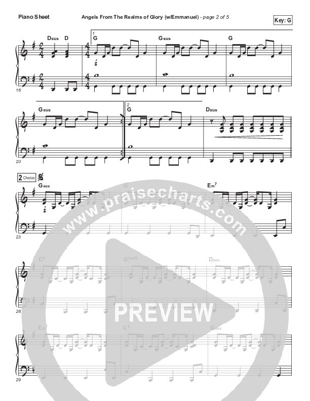Download the piano sheet for Angels From The Realms Of Glory (Emmanuel) by Paul Baloche, from the album Christmas Worship 2. This song was arranged by Daniel Galbraith in the key of A, Ab, Bb, E, Eb, F, G.