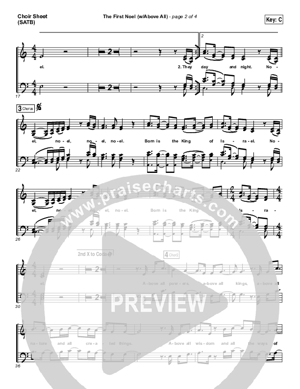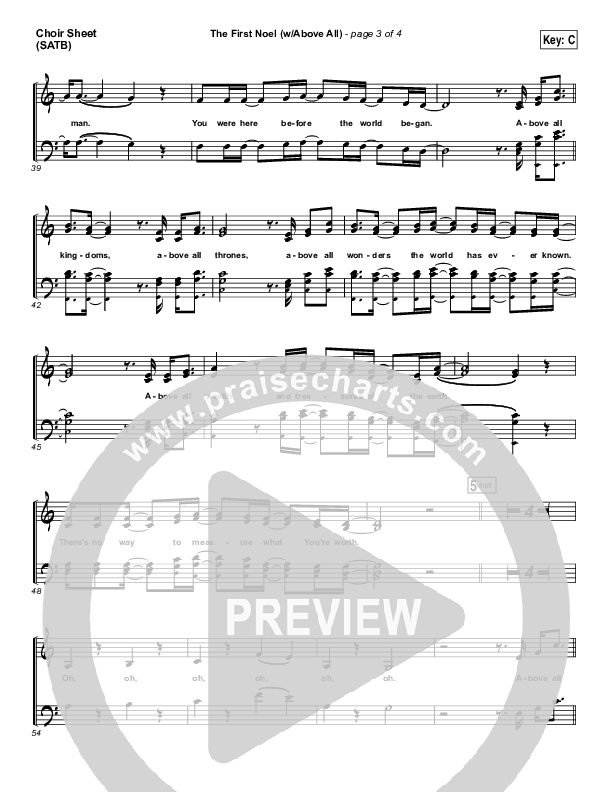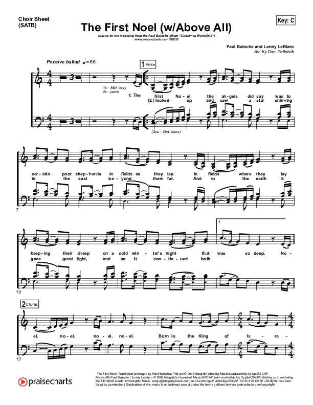 Download the Choir Sheet for The First Noel (Above All) by Paul Baloche, from the album Christmas Worship 2. This song was arranged by Daniel Galbraith in the key of B, Bb, C.