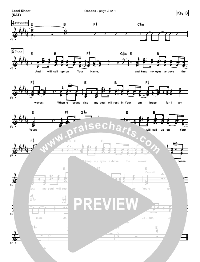 Download the sheet music for Oceans (Where Feet May Fail) by Adam Kersh / North Point Worship, from the album Hear. This song was arranged by Ed Kerr in the key of B.