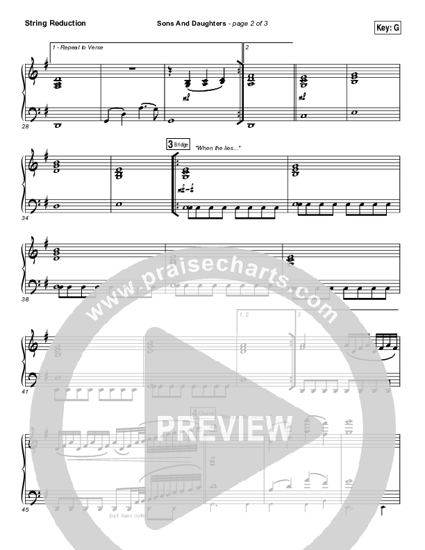 Download the Orchestration string parts for Sons And Daughters by Brett Stanfill / North Point Worship, from the album Hear. This song was arranged by Erik Foster / Daniel Galbraith in the key of F, G.