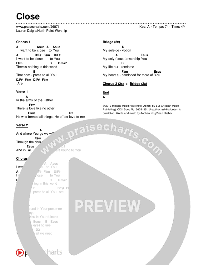 Close Chords PDF (Lauren Daigle / North Point Worship)