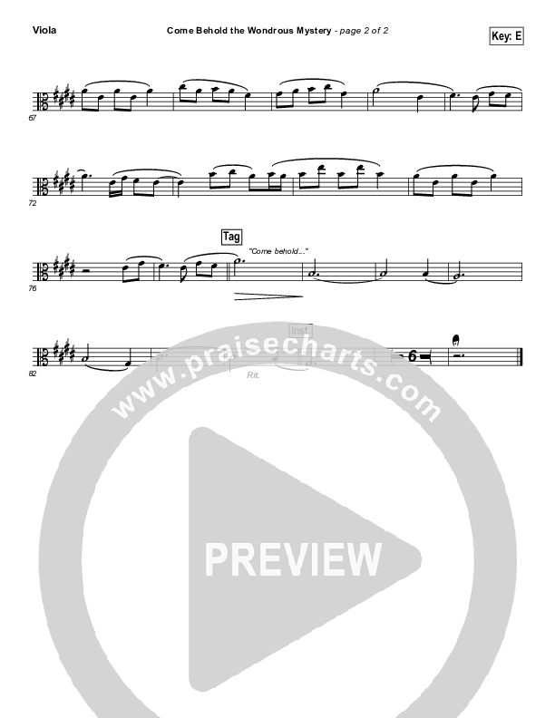 Download the Viola sheet music for Come Behold The Wondrous Mystery by Matt Boswell, from the album Messenger Hymns (Vol 2). This song was arranged by Brad Henderson in the key of E, Eb, F, G.