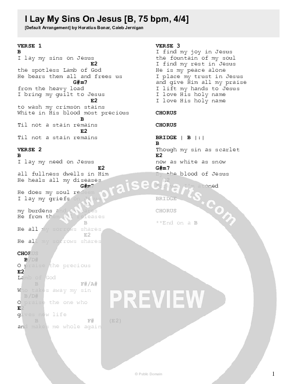 Download the PDF Chord Charts for I Lay My Sins On Jesus by Caleb Jernigan, from the album Jesus Is King.