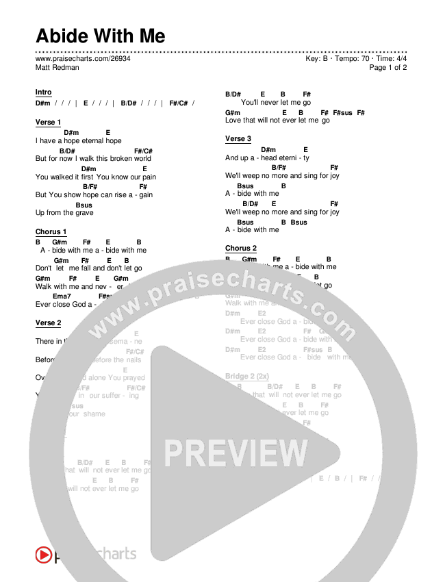 Download the PDF Chord Charts for Abide With Me by Matt Redman, from the album Unbroken Praise. This song was arranged by Ed Kerr / Daniel Galbraith in the key of B, Bb.