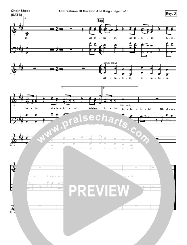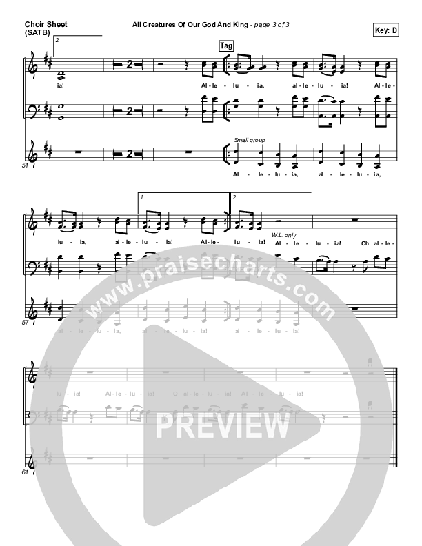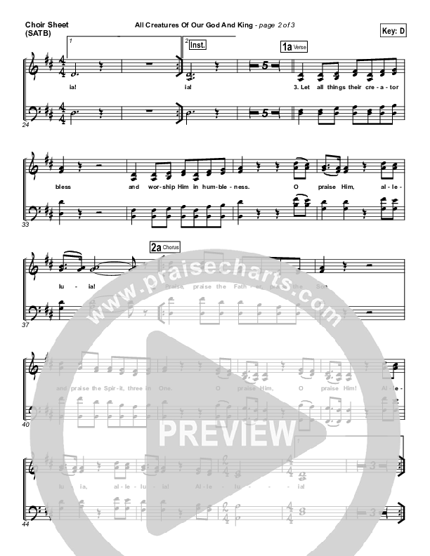 Download the Choir Sheet for All Creatures Of Our God And King by David Crowder, from the album Illuminate. This song was arranged by Daniel Galbraith in the key of C, D.